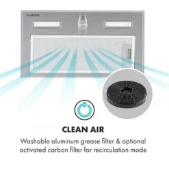 Die Dunstabzugshaube kann mit Hilfe von einem Aktivkohle-Filter (Artikel 10034599) auf Umluft-Betrieb umgerüstet werden.