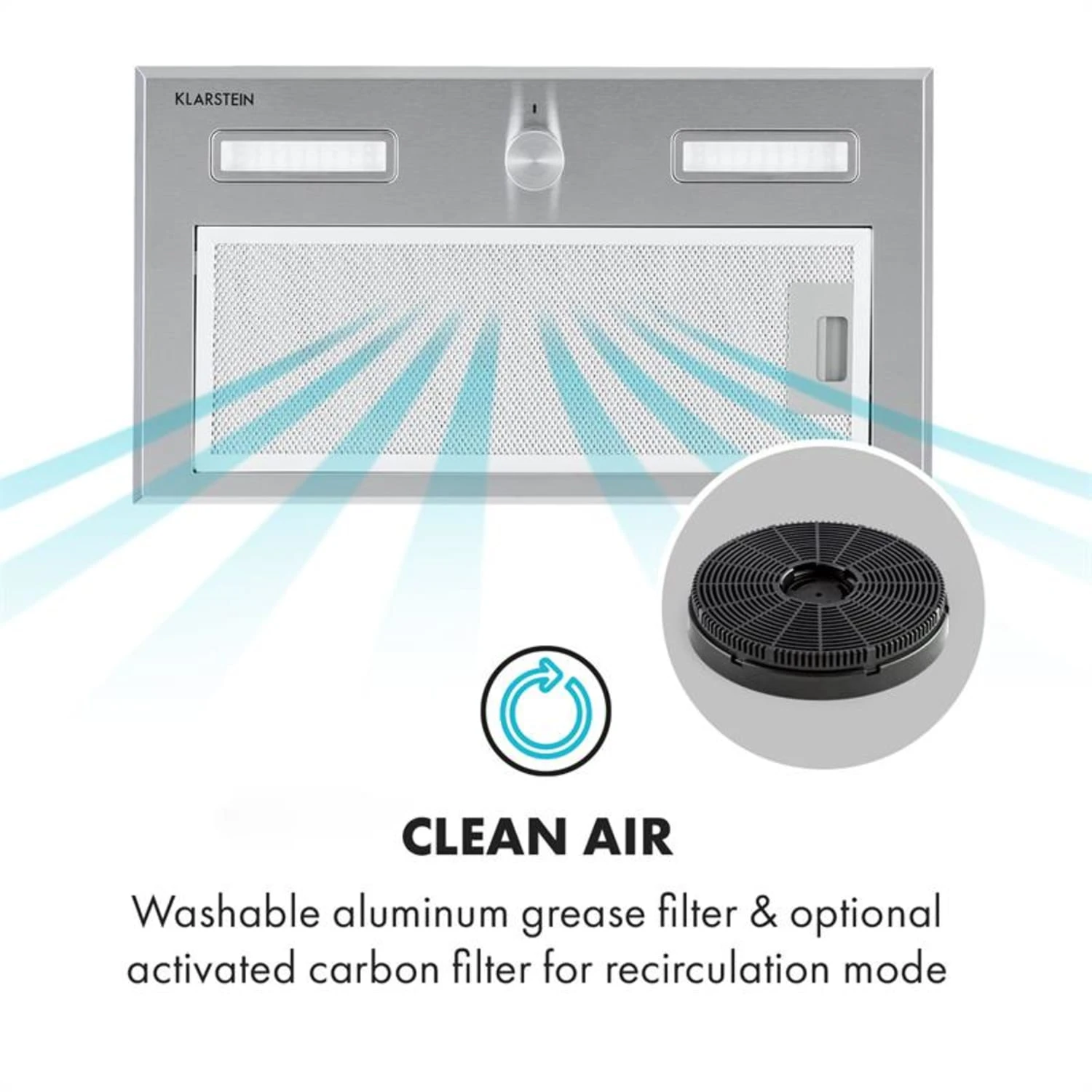 Die Klarstein Simplica sorgt mit 125 Watt Motorleistung im Abluftbetrieb für dunstfreie Luft in kleinen bis großen Küchen. Drei Leistungsstufen liefern bis zu 400 m³ Abluftleistung in der Stunde und passen die Einbauhaube dem jeweiligen Kochaufkommen an. Die Besonderheit der 52 cm breiten Simplica ist die Fähigkeit, sich vollkommen in die Küchenzeile integrieren zu können. Anders als die meisten Einbauhauben verschwindet sie randlos im Küchenschrank über dem Herd und zeigt sich nur mit ihrer edlen Unterseite aus gebürstetem Edelstahl. Am vorderen Rand der Simplica liegt ein praktischer und ansehnlicher Drehknopf, mit der Lüftung und Beleuchtung gesteuert werden. Das zuschaltbares Licht mit 2 x 1,5 W LED-Lampen sorgt darüber hinaus jederzeit für gute Sichtverhältnisse auf der Kochfläche.