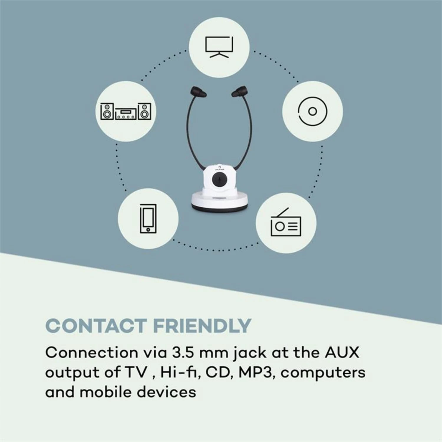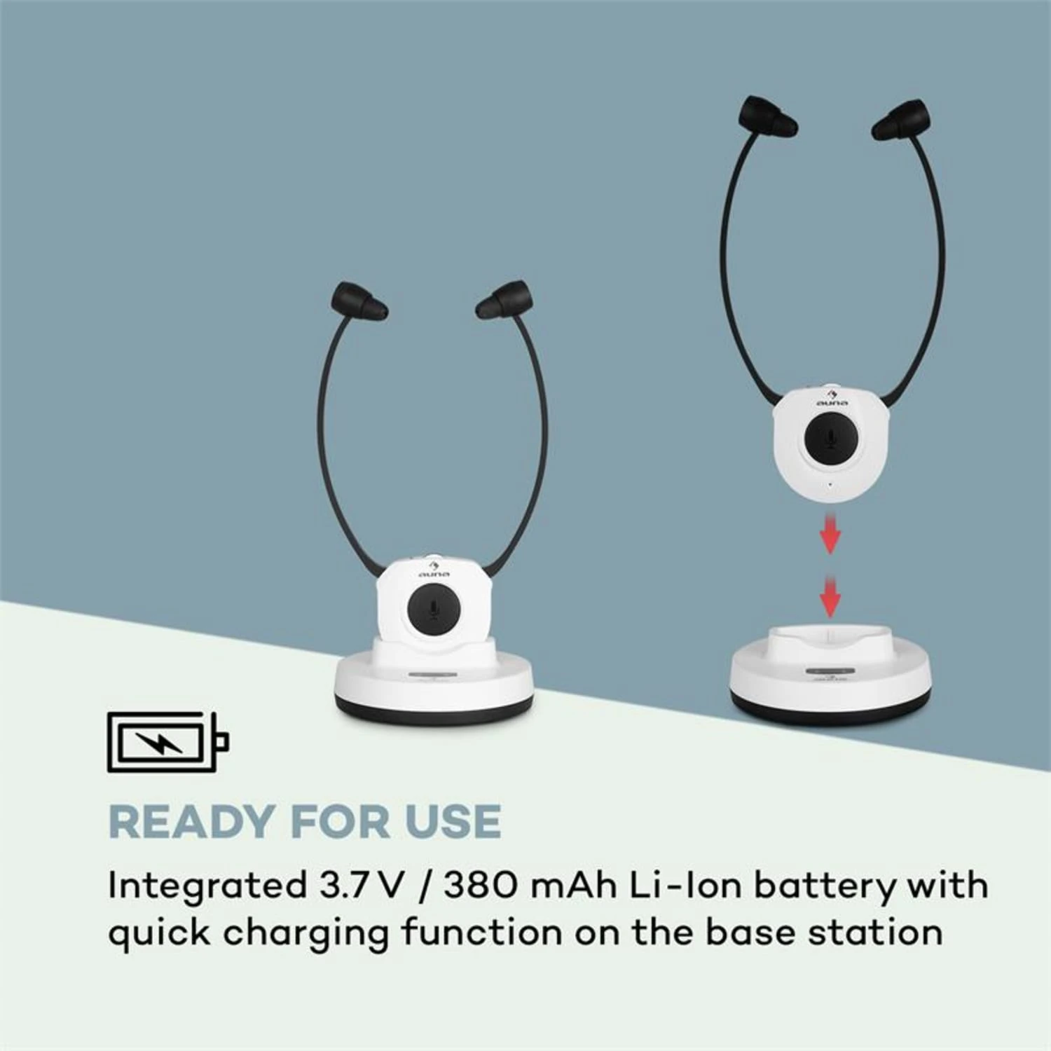 Komfortabler und unkomplizierter Hörgenuss – mit dem auna Stereoskop Funk-Kinnkopfhörer können Sie Ihre Lieblingssendungen und Musik endlich in der Lautstärke hören, die Sie benötigen ohne Mitbewohner oder Nachbarn zu stören.