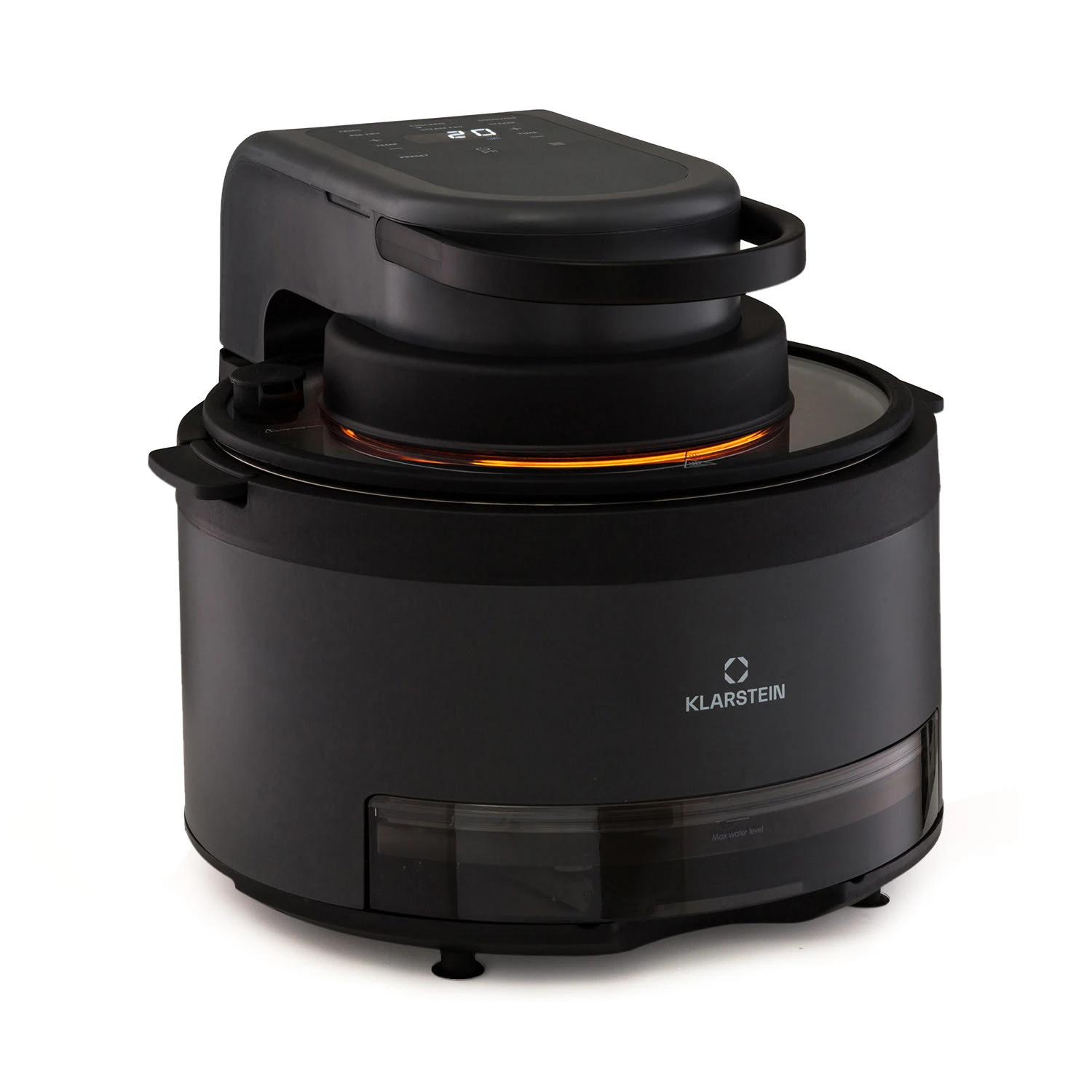 Fettarmes Garen, schnell und einfach: Die Klarstein Vendure Heißluftfritteuse mit Dampffunktion ermöglicht dir mit wenigen Handgriffen die Zubereitung zahlreicher leckerer Gerichte.