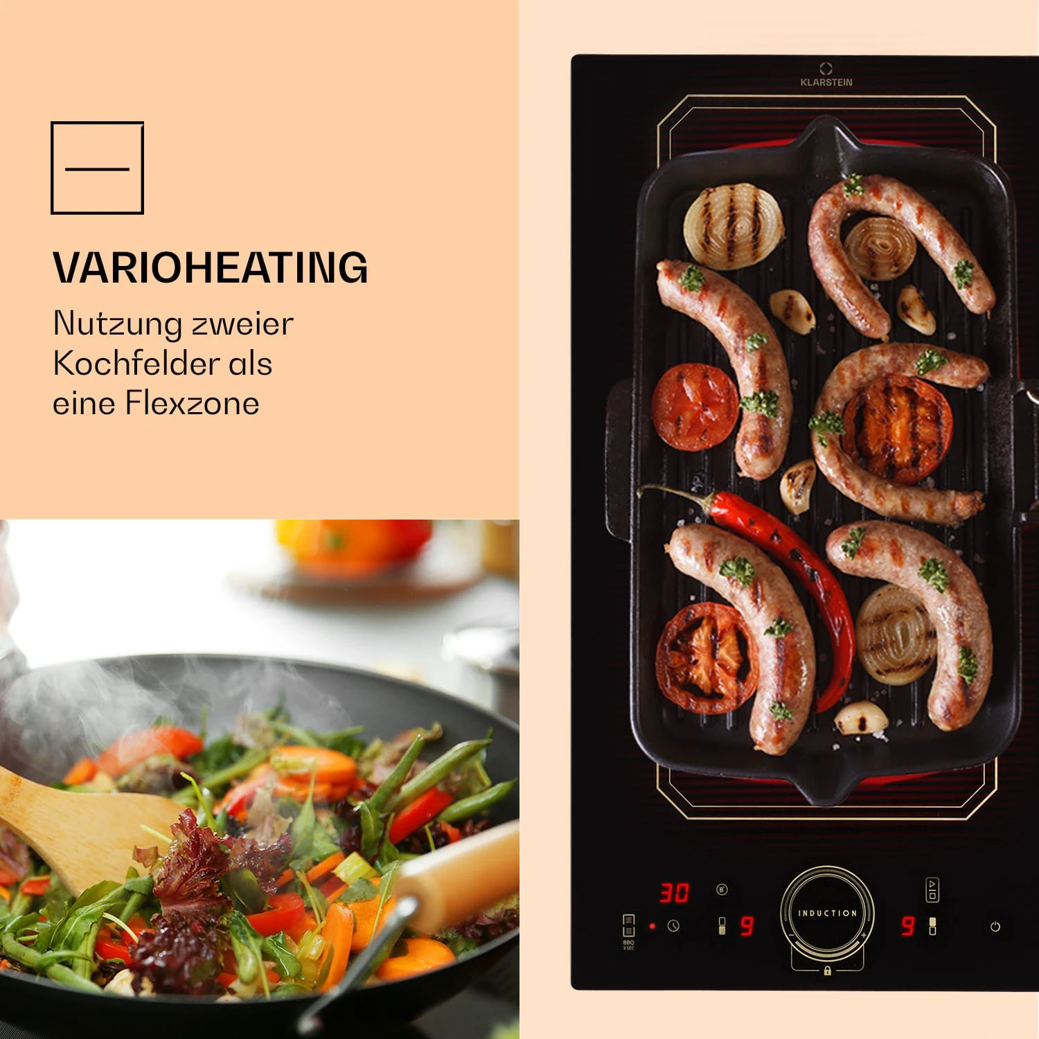 Victoria Domino Induktionskochfeld Einbau 3500W Flexzone Timer