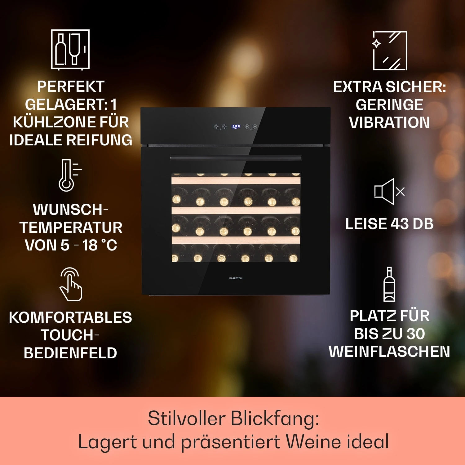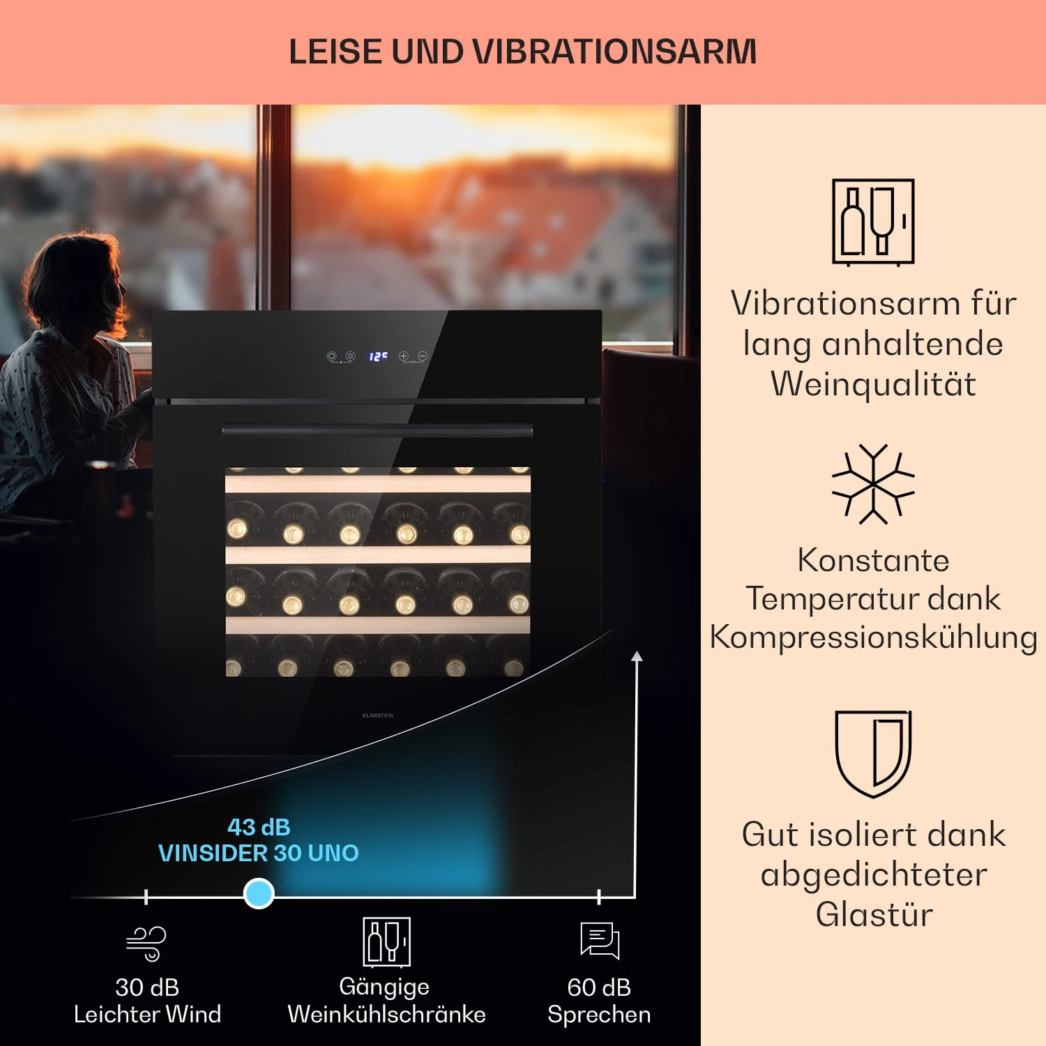 Vinsider 30 Built-In Uno Einbau-Weinkühlschrank 30 Flaschen 77 Ltr Edelstahl