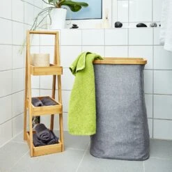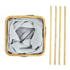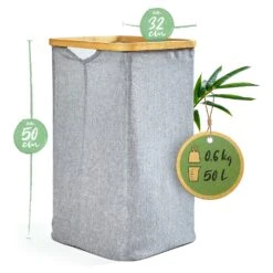 Wäschekorb Eckig Bambus Baumwollleinen Einfacher Aufbau