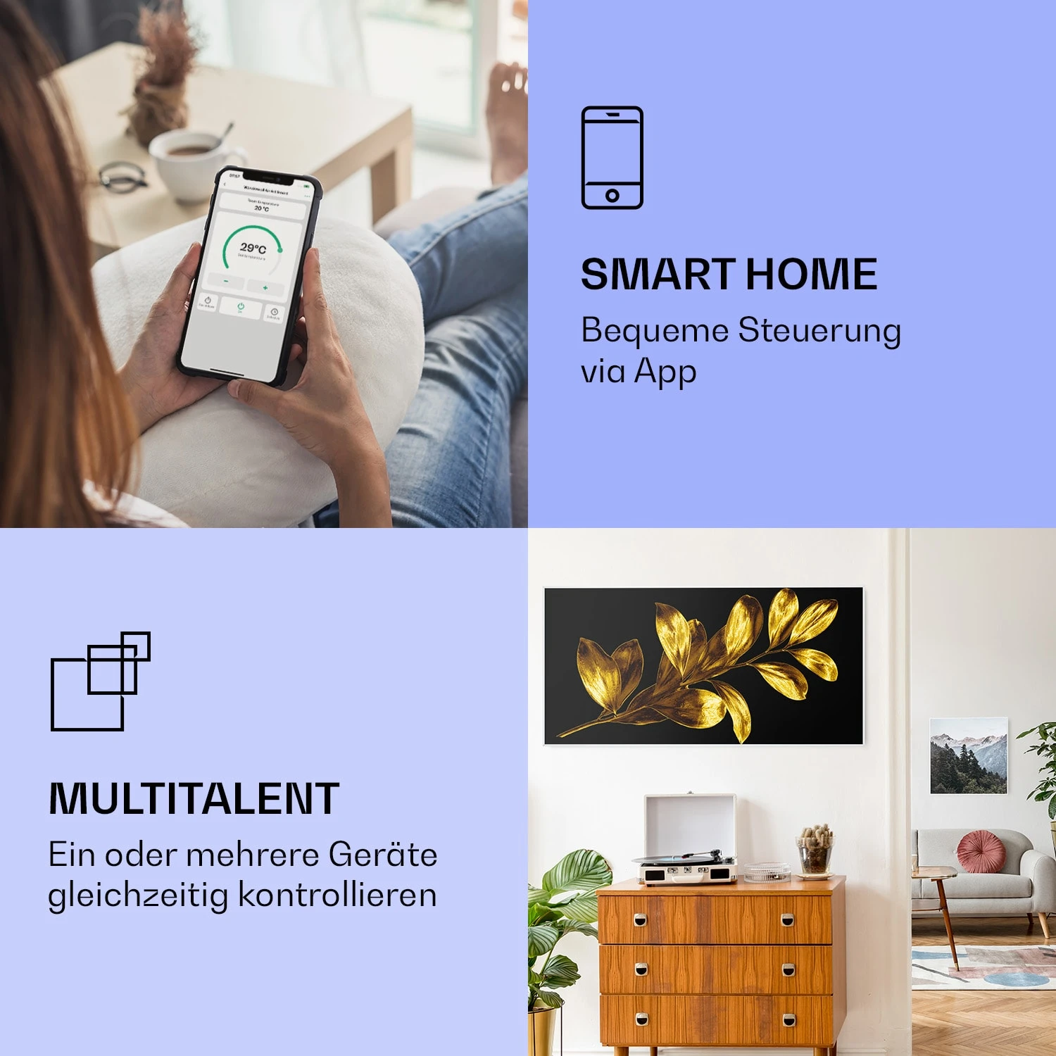 Wonderwall Air Art Smart Infrarotheizung Goldenes Blatt 120x60cm 700W
