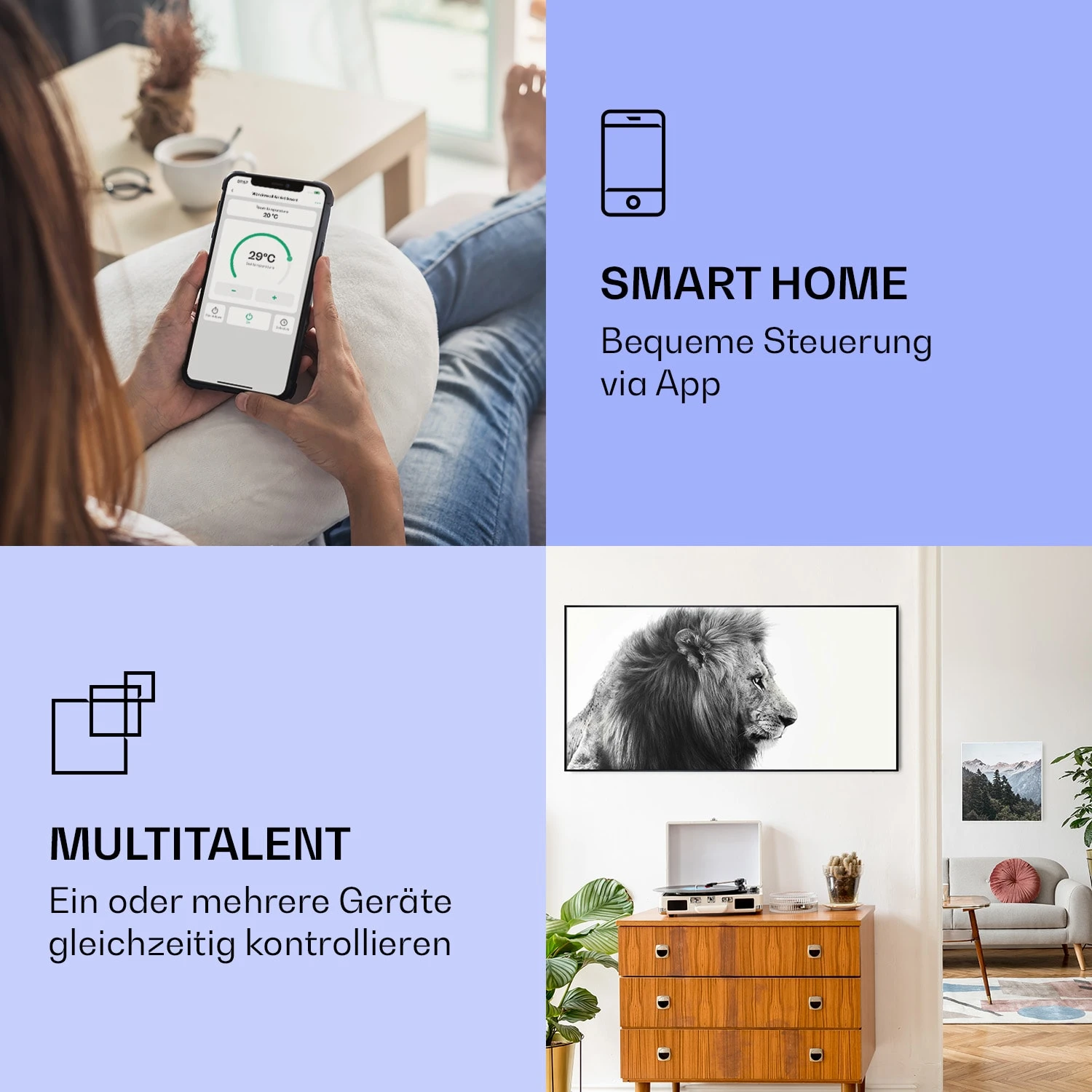 Wonderwall Air Art Smart Infrarotheizung Löwe 60x120cm 700W