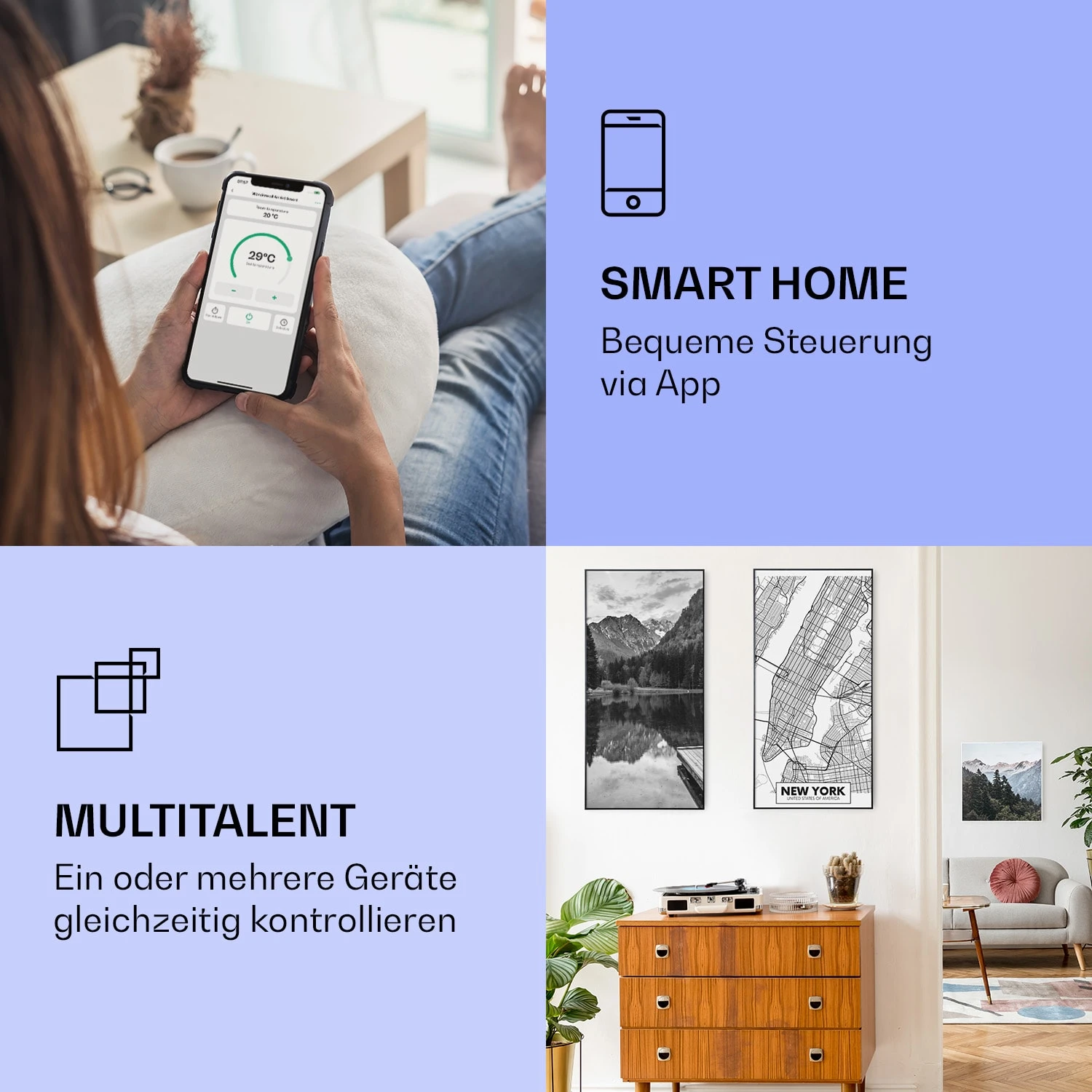 Wonderwall Air Art Smart Infrarotheizung Map New York 60x120cm 700W