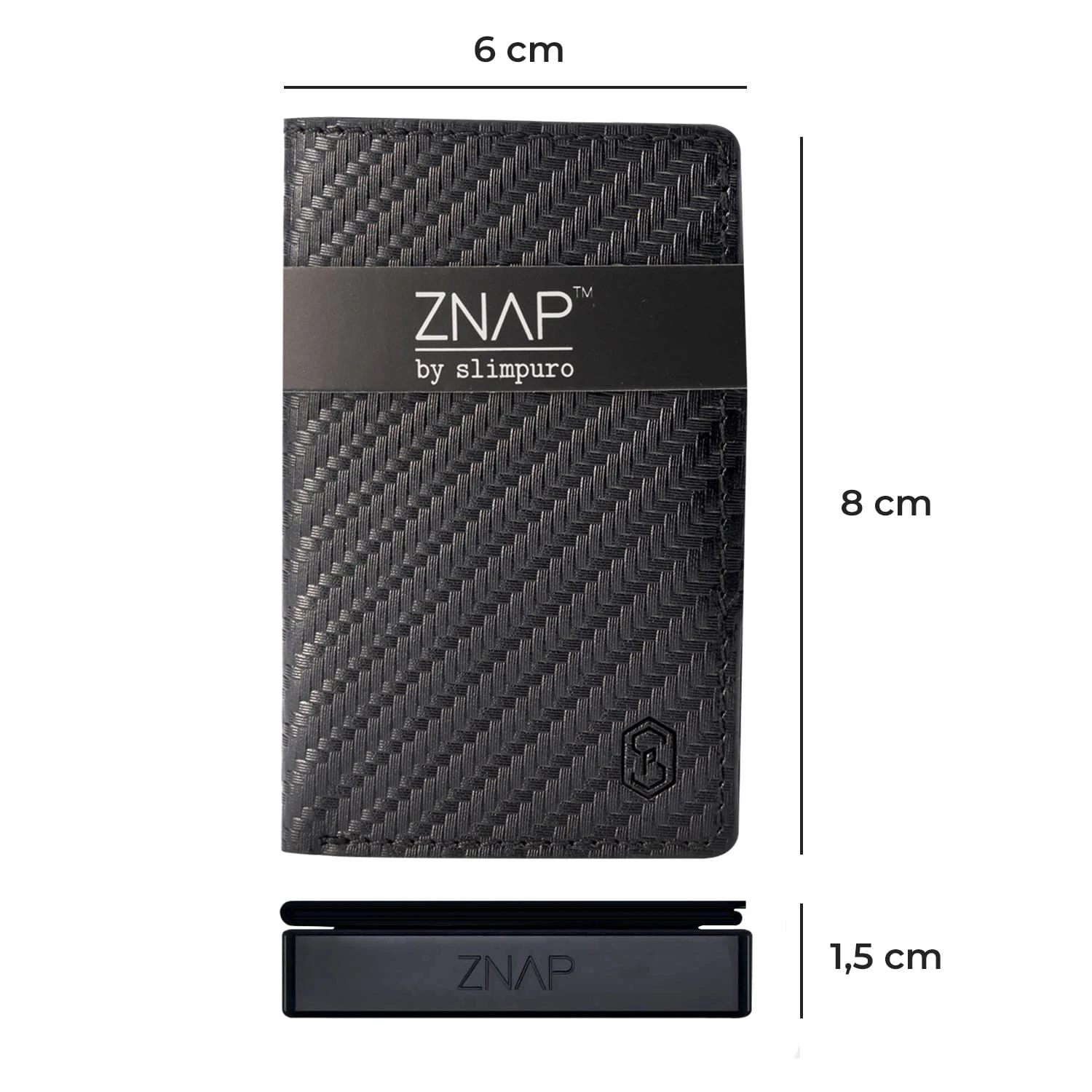 Keine Lust mehr auf große, unhandliche und unsortierte Portemonnaies? Mit dem ZNAP Slim Wallet von slimpuro schrumpft deine Geldbörse auf 8 x 1,5 x 6 cm (BxHxT) zusammen. Natürlich hast du weiterhin Platz für bis zu 8 Karten sowie Geldscheine und Münzen. Das Mini-Portemonnaie mit seinem robusten Case aus Aluminium und einer RFID Schutz Karte schützt deine Bankkarten vor Datendiebstahl. Im hochwertigen Geldscheinfach finden – ungefaltet – Banknoten bis 200 Euro Platz. Mit seinen vielen unterschiedlichen Farben und Designs findet jeder sein passendes ZNAP Slim Wallet.